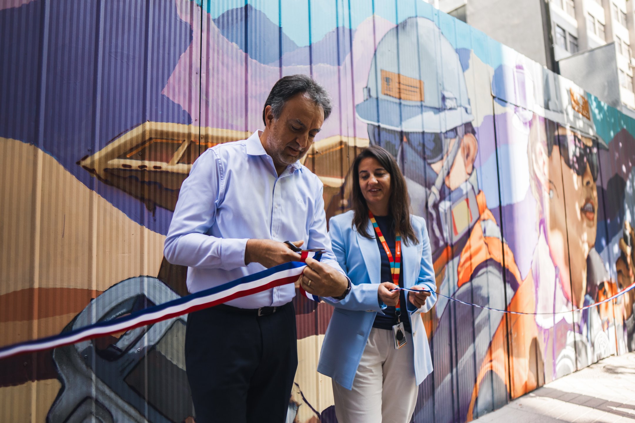 “Decidimos incorporar este mural como una forma de afianzar aún más las buenas relaciones que tenemos con el entorno y el compromiso de Codelco como parte del casco histórico de Santiago. Esta obra es un aporte cultural al barrio, que refleja el sentir de las personas que cohabitan día a día en el sector”, describe Juan Rojas, gerente del Proyecto Edificio Corporativo.