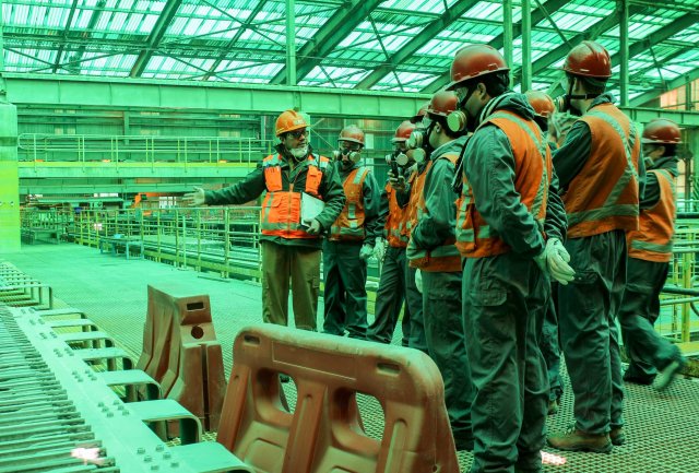 Durante el recorrido estuvieron en la Fundición y también en la Planta Electrowinning (EW), oportunidad donde observaron las tareas que se realizan cotidianamente en la división. Además conocieron los detalles técnicos que contempla el proceso de transformación del rajo a mina subterránea.