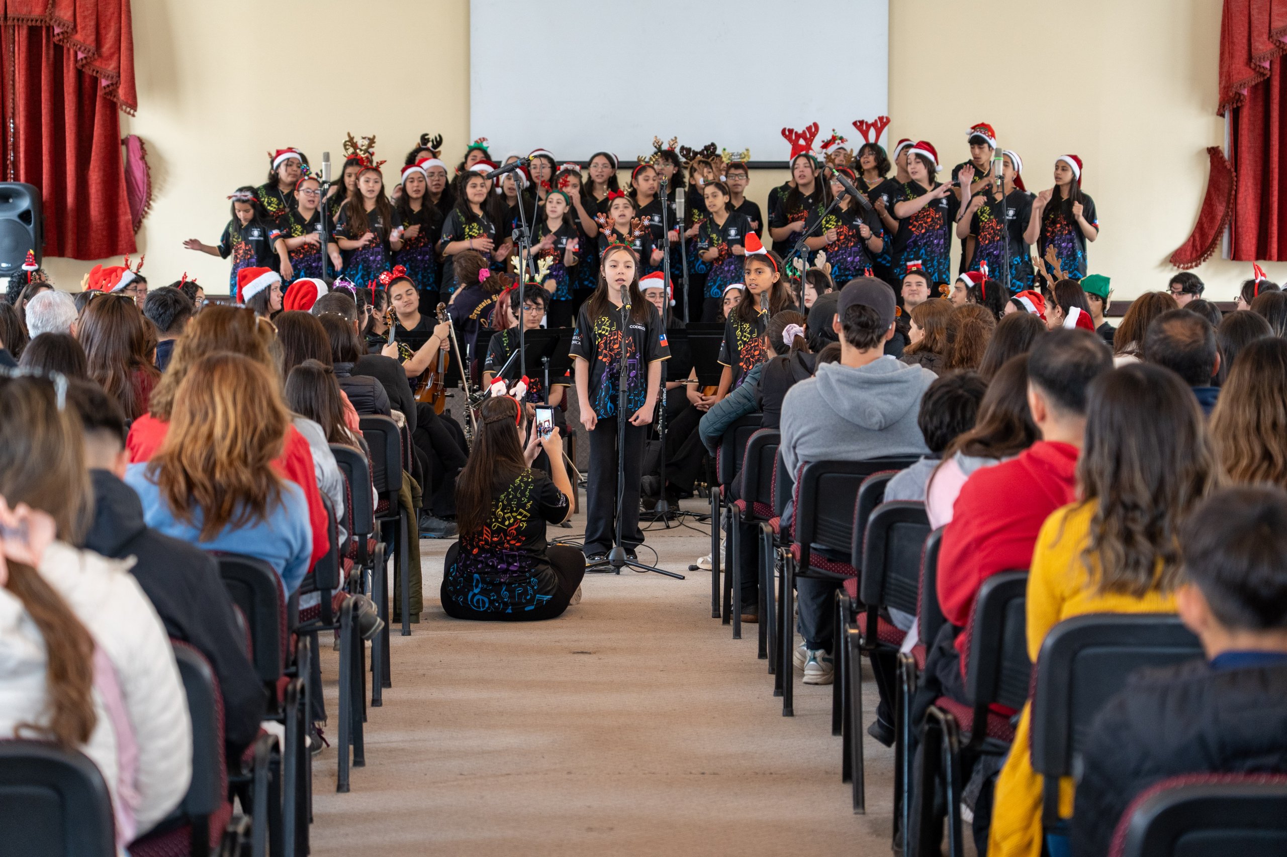 La actividad reunió a las comunidades de San Antonio, Doñihue, Olivar y Machalí, quienes pudieron disfrutar de un repertorio que recorrió ritmos chilenos, música docta y villancicos, interpretados por 43 niños y jóvenes músicos de diversas comunas de la región, bajo la batuta del director Leonardo Carvajal.